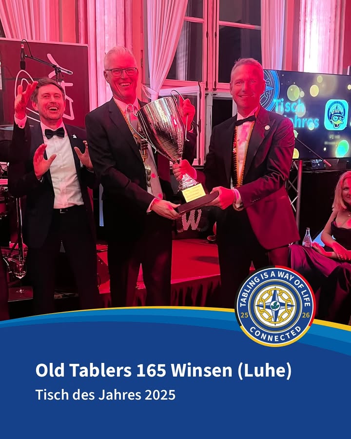 Wir gratulieren dem OT165 Winsen (Luhe) zur Auszeichnung „Tisch des Jahres“. Damit verneigen wir uns vor dem großen Engagement der Tabler aus dem Landkreis Harburg.