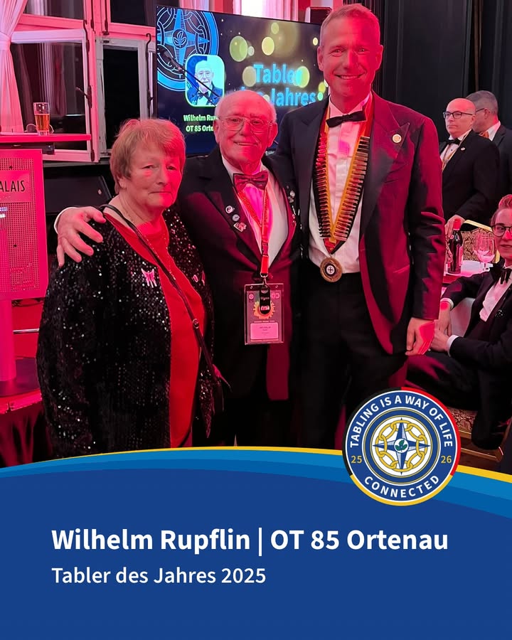 Wilhelm Rupflin vom OT 85 Ortenau ist „Tabler des Jahres“. Er erhielt im Beisein zahlreicher Ladies und Tabler die Auszeichnung auf der Gala des HYM.